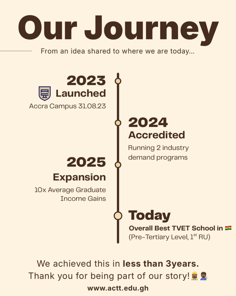 This award is a testament to ACTT’s commitment to building a new pathway from skills to dignified work for young people in Ghana and across Africa. At a time when millions of young people are unemployed and employers struggle to find skilled talent, ACTT delivers a demand-driven technical training model that leads to real jobs, income growth, and economic inclusion. We are closing the gap between youth unemployment and skills shortages by rebuilding trust, standards, and dignity in technical work.